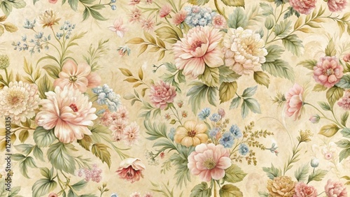 Vintage Floral Pattern with Soft Pastel Colors and Detailed Design