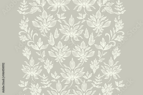 Vintage Floral patterns seamless background border embroidery ethnic batik retro. Lotus Flower motifs White green pink silhouette watercolour flowers ikat design hand drawn. Vector illustration.
