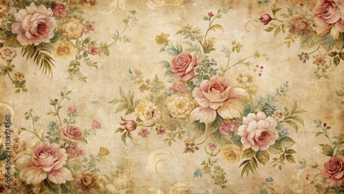 Vintage floral wallpaper with distressed textures and faded colors, retro, antique, background, abstract, design, texture