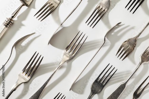 Vintage forks pattern, top view. Vintage cutlery