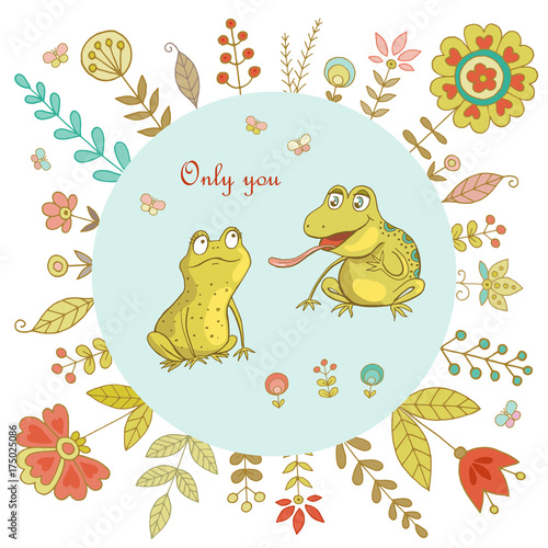 Vintage frame for your design with cute frogs and flowers