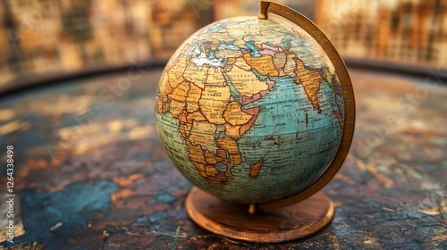 Vintage Globe On A Map. The Concept Of Global Connections And Explorations.