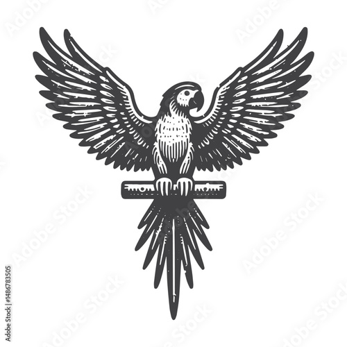 Vintage Hand-Drawn Parrot with Wings Spread Illustration – Tropical Exotic Bird Engraved Style Vector for T-Shirts, Posters, Stickers, and Nature Themes Apparel