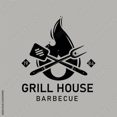 Vintage hipster logo template. Butchery, Barbecue, Cooking Class and Restaurant emblems templates. Barbecue, Steak House vintage logo.