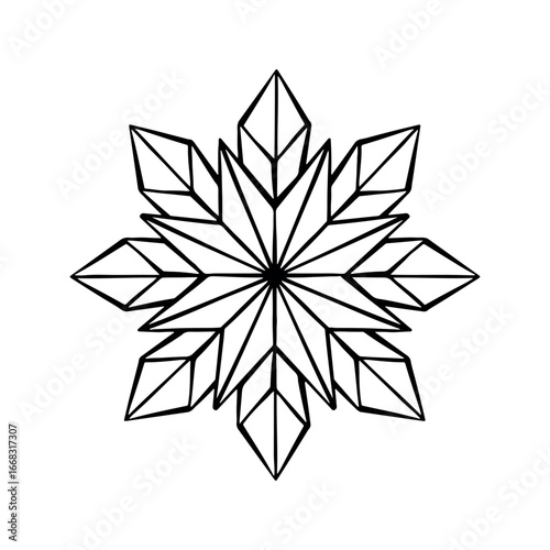 Vintage ice snowflake, star. Vector winter outline illustration. Monochrome sketch. Black graphic snowflake isolated on white background