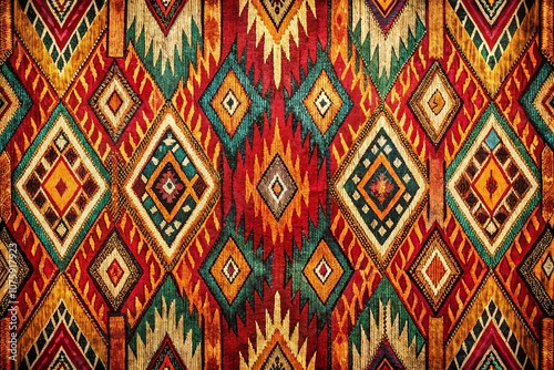 Vintage Ikat Ethnic Pattern Design Featuring Tribal Vertical Geometric Textures and Embroidery in Rich Earthy Tones for Background and Textile Use