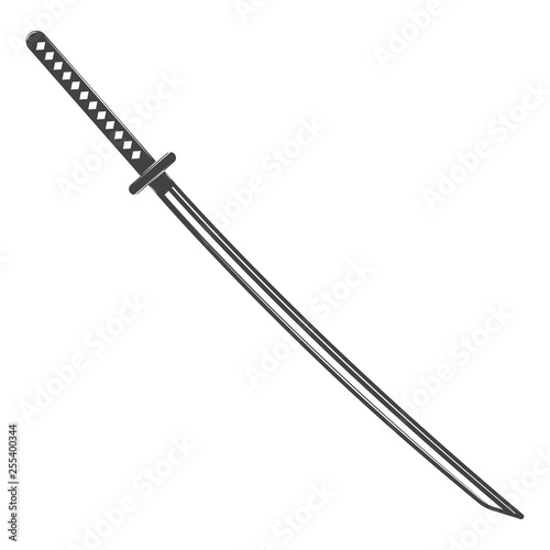 Vintage katana sword isolated on white background. Traditional japanese weapon. Vector flat design