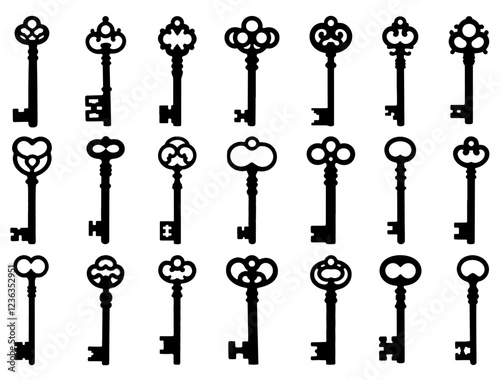 VINTAGE KEYS SILHOUETTE ON WHITE BACKGROUND