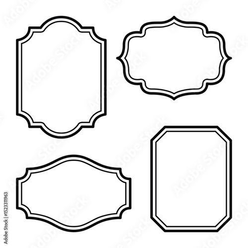 Vintage Label Frame Vector Set, Classic Outline Badge Templates.