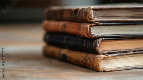 Vintage leather-bound books on rustic wooden table for antique literature enthusiasts