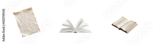 Vintage letters and old books with open pages and torn paper details
