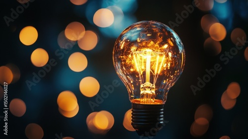 Vintage Light Bulb Glowing Against Soft Bokeh Background at Night