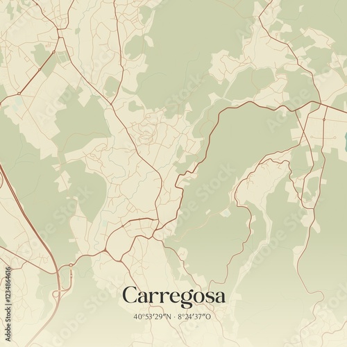 Vintage map of Carregosa, Portugal.