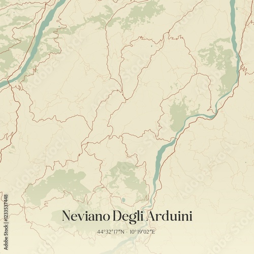 Vintage map of Neviano Degli Arduini, Italy.