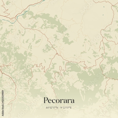 Vintage map of Pecorara, Italy.