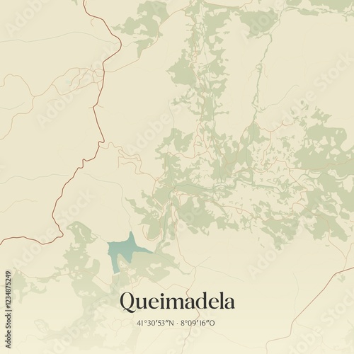 Vintage map of Queimadela, Portugal.