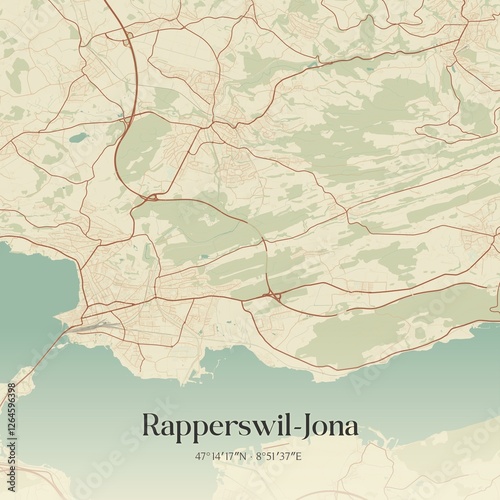 Vintage map of Rapperswil-Jona, Switzerland.