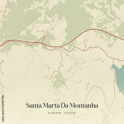 Vintage map of Santa Marta Da Montanha, Portugal.