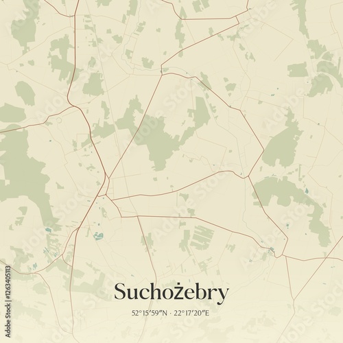 Vintage map of Suchozebry, Poland.