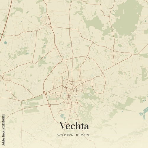 Vintage map of Vechta, Germany.