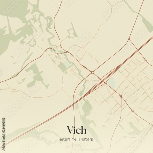 Vintage map of Vich, Switzerland.