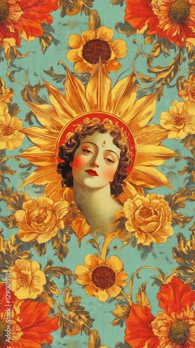 Vintage maximalist wallpaper with woman pattern art illustration.