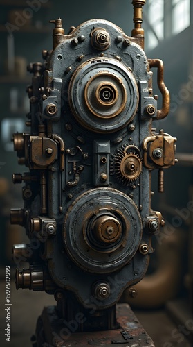 Vintage Mechanical Machine with Gears and Cogs in Industrial Workshop