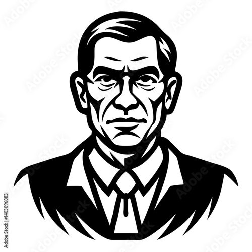 Vintage Men in Suit Retro Monochrome Portrait Ideal for Tattoo Designs or Graphic Art Projects