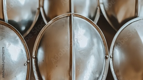 Vintage Metal Shields Displayed in a Row for Decorative Purpose
