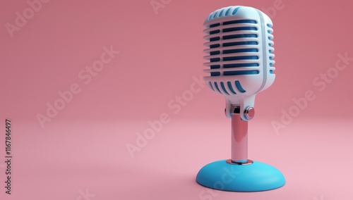Vintage Microphone on a Pink Background