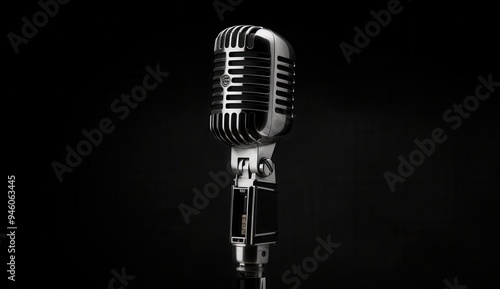 Vintage Microphone with Chrome Finish on Black Background