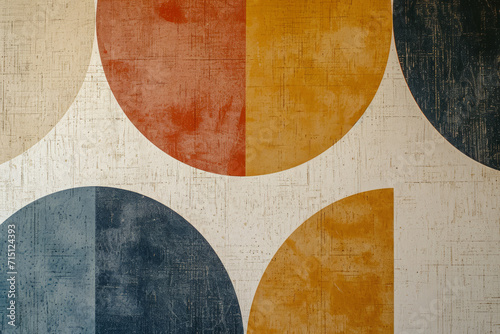 Vintage Mid-Century Inspired Modern Circular Geometric Wallpaper Design, Surface Material Texture