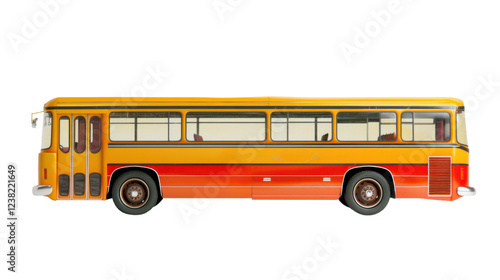 Vintage orange and yellow public transport bus isolated on transparent background