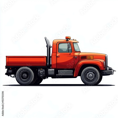 Vintage orange pickup truck parked against a white background showcasing its classic design and sturdy build