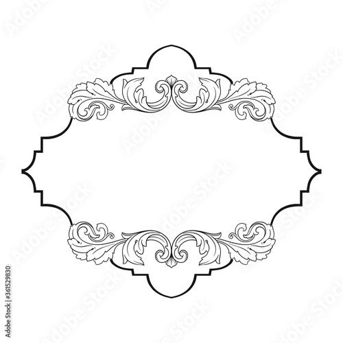 Vintage Ornament Element in baroque style with filigree and floral engrave the best situated for create frame, border, banner. It's hand drawn foliage swirl like victorian or damask design arabesque.