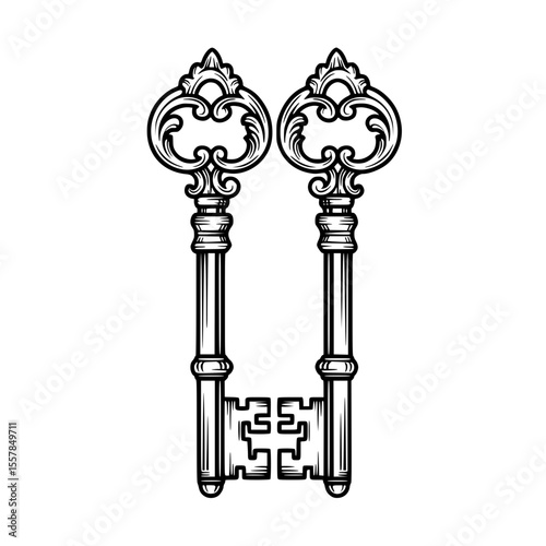 Vintage ornate keys in minimalistic black and white design