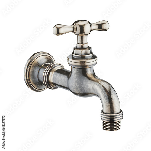 Vintage Outdoor Faucet with Antique Finish on White Background