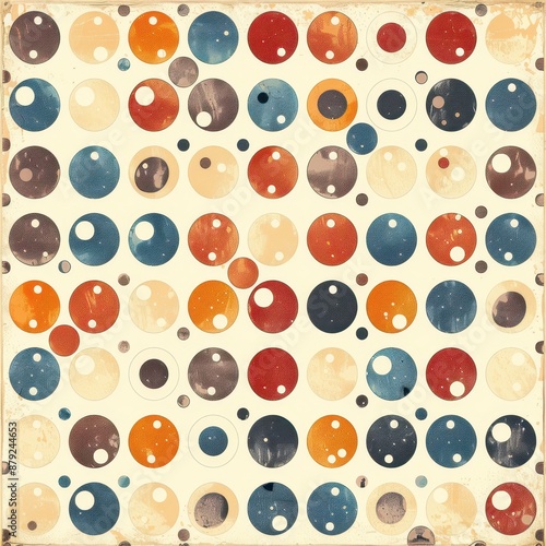 Vintage Pattern of Colorful Circles on White Background
