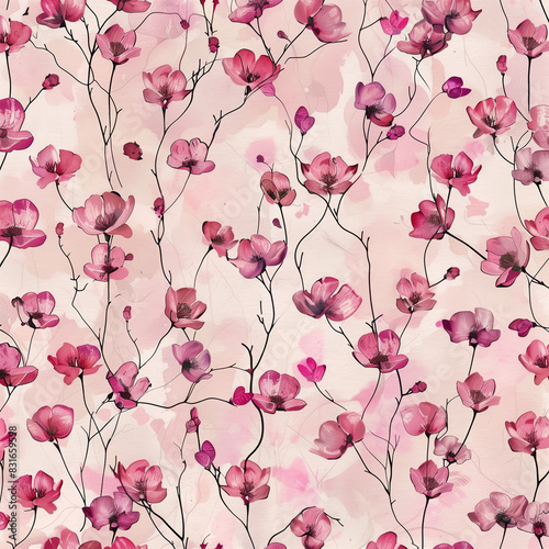 Vintage Pink Blossoms Dress in Floral Cotton Texture