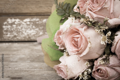 vintage pink rose flower on wooden background
