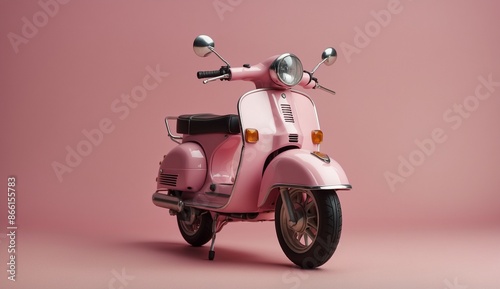 Vintage pink scooter on seamless pink background