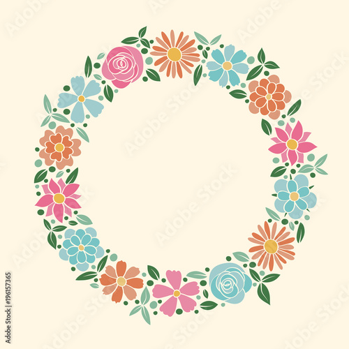 Vintage poster with hand drawn flowers and copyspace. Spring and birthday background. Vector.