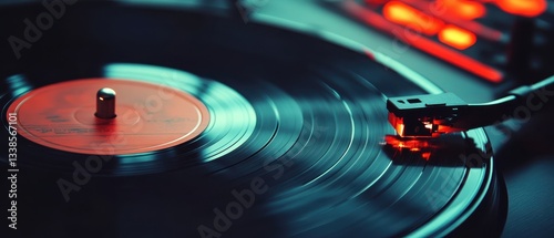 Vintage Record Player with Spinning Vinyl Disc and Vibrant Lighting