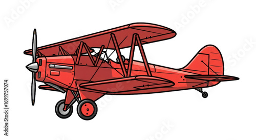 Vintage red biplane illustration