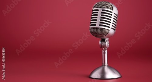 Vintage retro microphone on red background