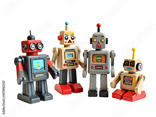 Vintage Retro Robot Toys Collection Four Classic Tin Robots in a Row
