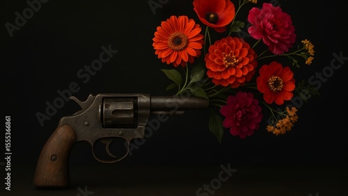 Vintage Revolver with Colorful Flowers, Peace Over War Symbol