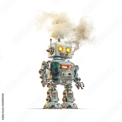 Vintage robot emitting smoke isolated on a transparent background retro steam