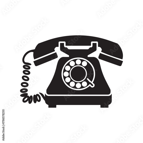 Vintage Rotary Dial Telephone Icon – Classic Retro Phone Silhouette Vector for Communication and Technology Design.