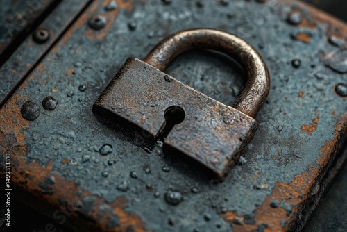 Vintage Rusty Padlock on Metal Texture Aged Security Protection Lock Safety Antique Old Still Life Photography Detail